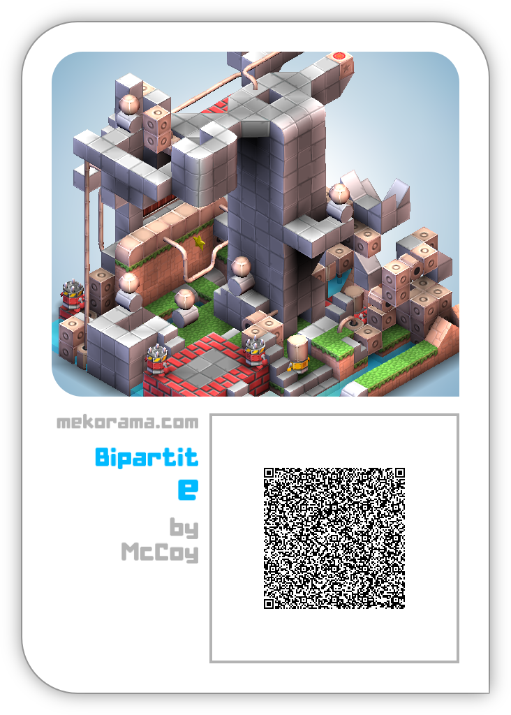 A timing, precision, focus, and memorization level which a two path headed bots are needed to reach to the top and escape. My new comeback level since 2018. I just missed creating in Mekorama, so I hope you enjoy it.