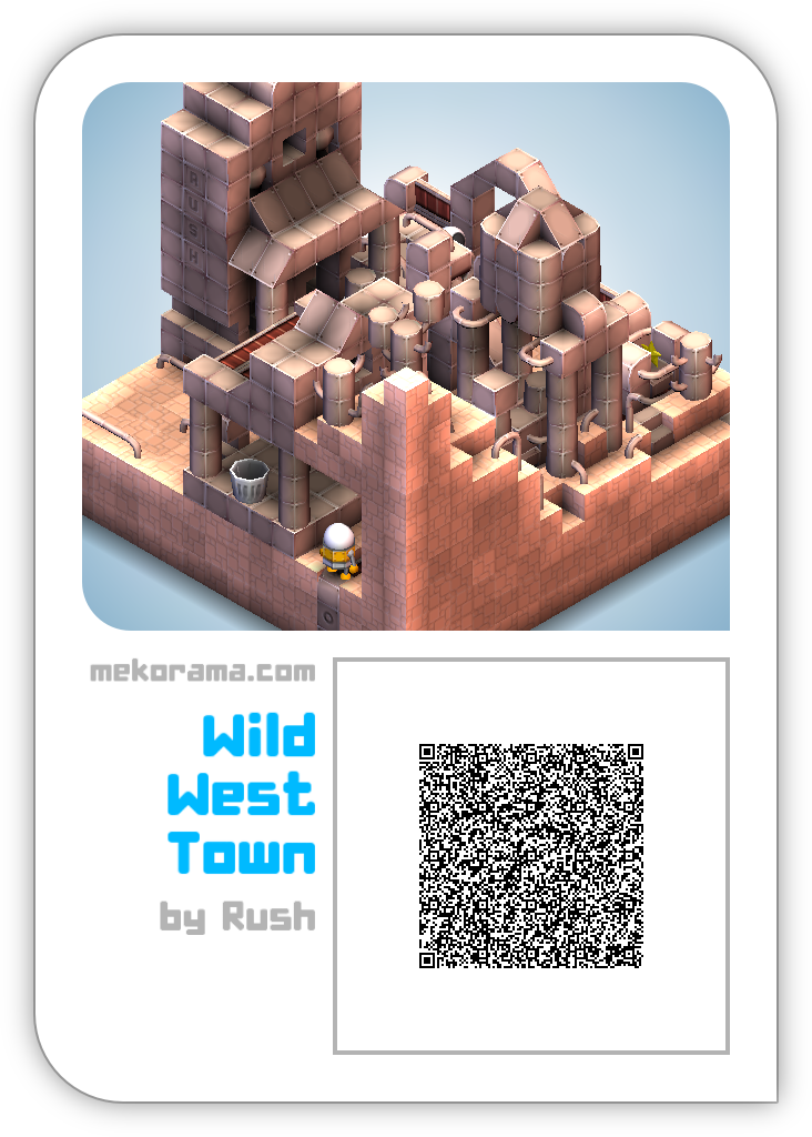 This is a beautiful scenery level with a detailed wild west town with some of the typical buildings and even a little steam train! :cool: Nice gameplay, even though there are some things that you have to figure out how to use and how they behave, like that spot in the dirt PR bot and B bot do not like and avoid. :D Had some great fun playing this, thanks! :thumbsup: